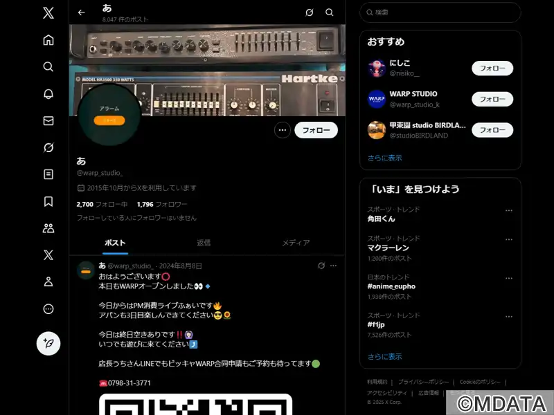 兵庫県西宮市の甲東園駅から徒歩1分の場所に、2015年11月にオープンしたバンドリハーサルスタジオ。12畳の広々としたスタジオが4部屋あり、平日・土日祝問わず均一料金で提供している。24時間予約可能で、最低2時間から利用可能。また、お得なパック料金や3ピースバンド割引もあり。無料で使えるエフェクターやレンタル可能なギター・ベースも完備。音楽に熱心で知識豊富なスタッフが、親切にサポートしてくれる。