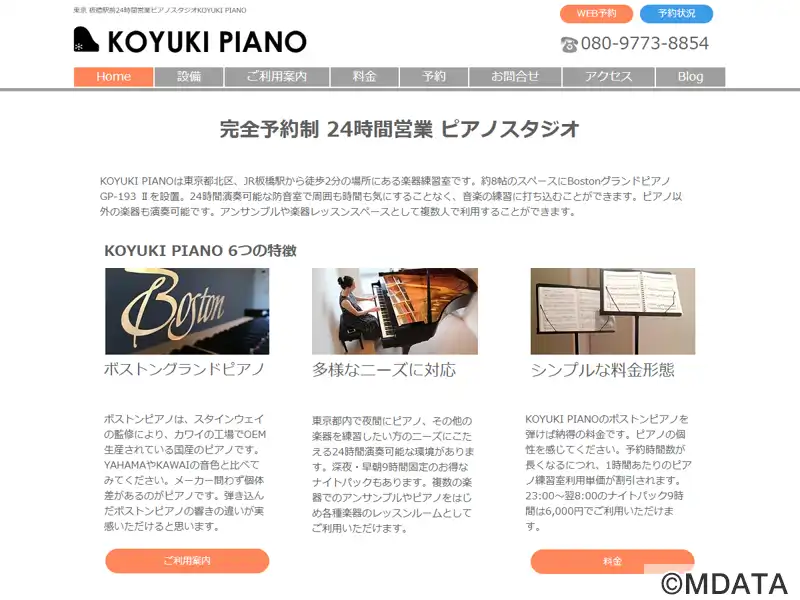 東京都北区に位置し、JR板橋駅から徒歩2分の立地にある完全予約制の24時間営業のピアノスタジオ。一部屋のプライベートな防音スペースに、ボストングランドピアノ(GP-193 Ⅱ)が設置されている。時間や周囲を気にせずにピアノの練習や弦楽器、複数人でのアンサンブル練習が可能。また、他の楽器の演奏やレッスンスペースとしても利用できる。夜間や早朝など、時間を選ばずに様々な音楽練習のニーズに対応している。