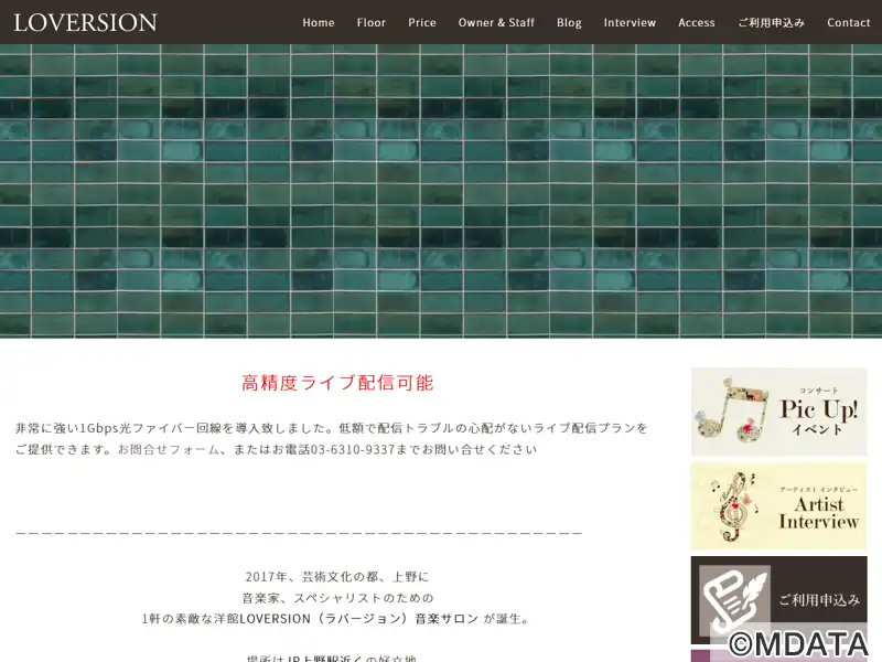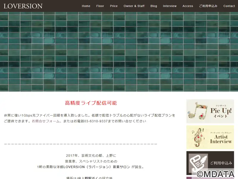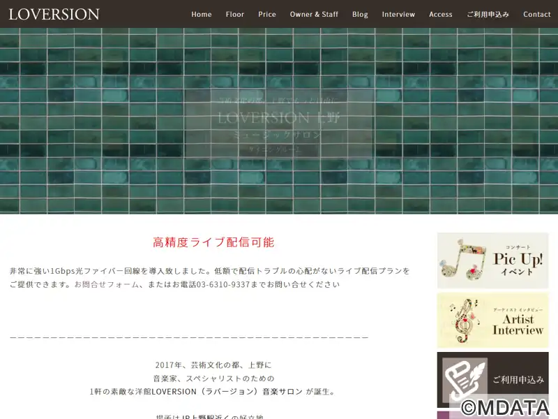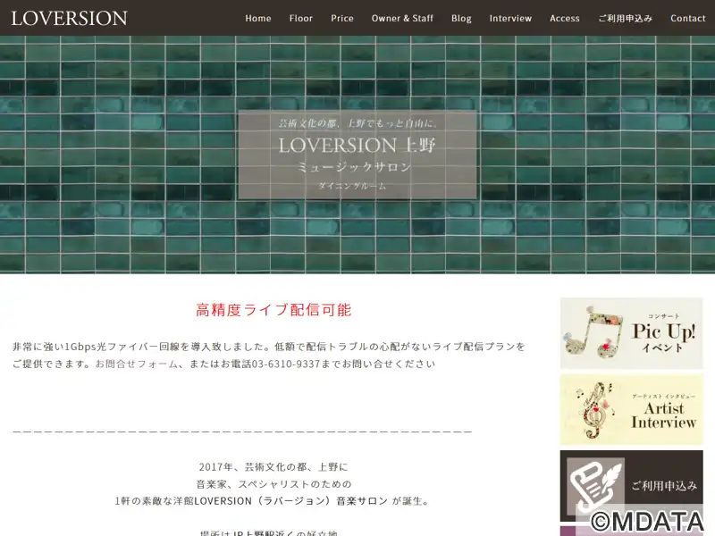 上野駅徒歩7分の場所に2017年開業した多目的スペース。1階はモダンスタイリッシュな音楽サロン。スタインウェイのグランドピアノを常備し、演奏会からリハーサル、講座などの利用に対応しいている。2階は、キッチン付きのダイニングスペース「ビストロ LOVERSION」として、演奏会の控え室や懇親会、料理教室やランチ会場としても利用できる。高性能なライブ配信が可能なインフラも備え、多目的に利用できる施設。