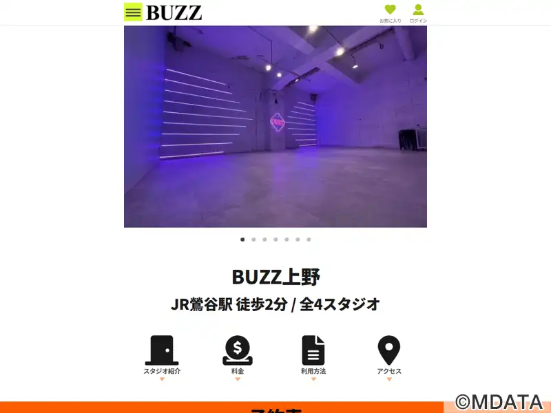 JR鶯谷駅徒歩2分の立地にあるレンタルスタジオ。ダンス・ヨガ・演劇などに利用できる4部屋を完備。1スタジオは55㎡の白を基調とした大型スタジオで、大人数でのリハーサルも可能。LEDネオンライトがあり、撮影にも適している。2スタジオは、レッスンなどに好評な中サイズスタジオ、3・4スタジオは少人数でのレッスンや個人練習、フォームの確認に最適。16年12月北上野でオープン、18年8月に現住所に移転した。