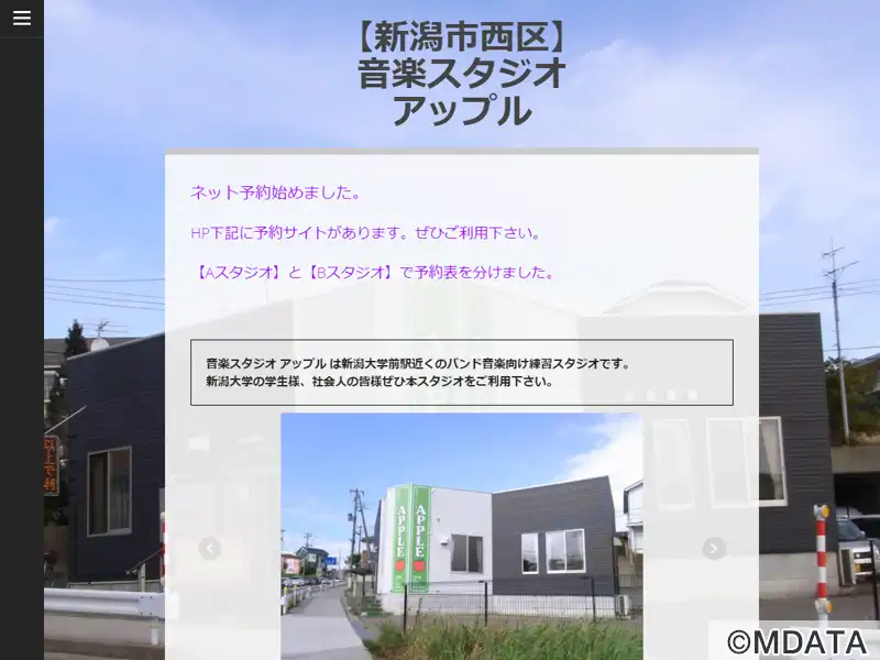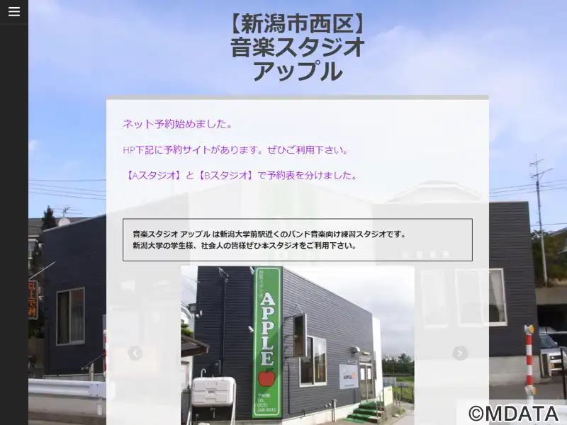 新潟市西区の新潟大学近くに位置する、バンド練習や個人練習に最適な音楽スタジオ施設。広々とした10畳の防音室に、楽器機材、エアコン、全身ミラーが完備され、快適な音楽活動の場が提供されている。新潟大学の学生や社会人の利用を想定したスタジオで、手頃な料金設定で提供されている。また、大型の駐車場と駐輪場が完備されており、アクセスも便利。営業時間は午前9時から翌朝2時までで、ネットでの予約も可能となっている。