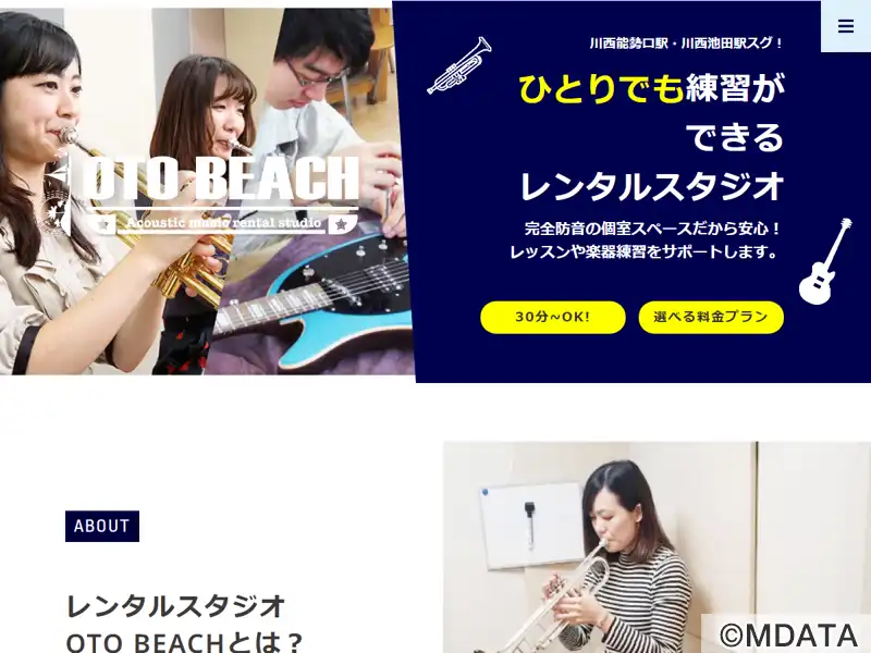 兵庫県川西市にある音楽練習室・レンタルスタジオ。管楽器やアコースティック楽器の練習に最適な、完全防音の個室スペースを2部屋用意。個人練習やアンサンブル、多様な音楽レッスンに対応する。ライブや配信用のスペースもあり。スタジオ利用の他、楽器販売やギター、ベースなどの楽器修理や、ボーカル、ギター、トランペットなどのレッスンも行なっている。音楽を始めたい人から上達を目指す人まで、幅広くサポートする音楽施設。