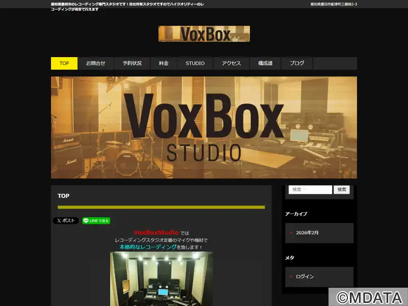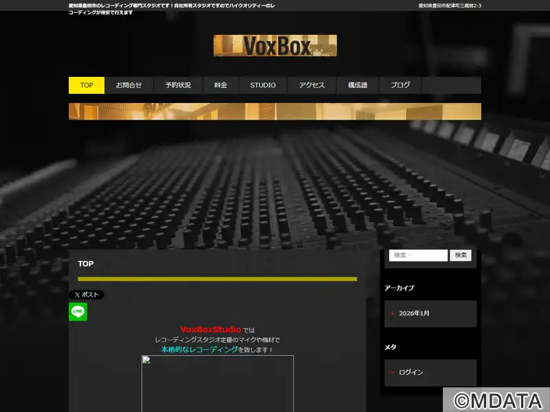 豊田市にある完全予約制レコーディングスタジオ。自社所有スタジオのため低料金で本格的なハイクオリティ・レコーディングを提供。東海地区では設置が少ない大型スピーカーで正確なモニタリングが可能。お得なレコーディングパック、おまかせミキシング、ボーカルレコーディングパックあり。配信ミックス、ライブマルチ録音にも対応。東海環状自動車道『豊田東IC』下車3分、駐車場完備。