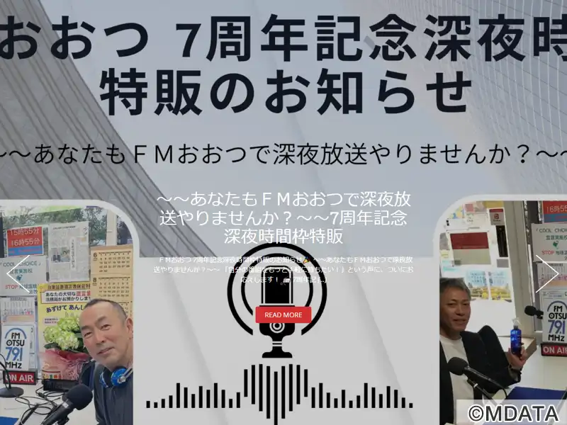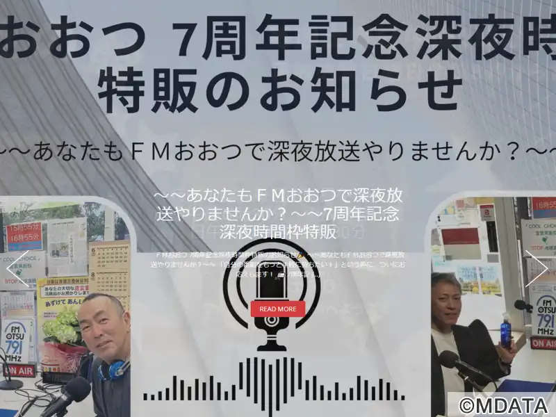 滋賀県大津市を放送区域とするコミュニティFMラジオ局。周波数はFM79.1MHzで、2018年4月に開局した。JR大津京駅から徒歩5分、県道45号沿いの本社スタジオから自社制作番組を中心に24時間放送。インターネットサイマル放送にも対応。琵琶湖の西南部にある県都・大津や滋賀に特化した地元発のプログラム、緊急時には防災メディアとしていち早い情報を発信する。放送出力10w、JOZZ7BR-FM。
