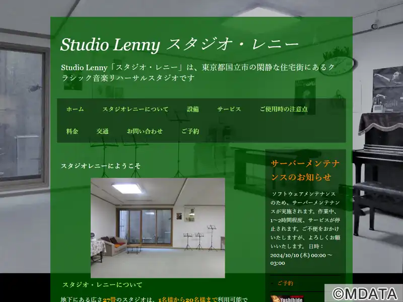 国立市谷保にあるクラシック用リハーサルスタジオ。27畳の広々とした地下スペースに、アップライトピアノも完備し1人から20人までの利用が可能。全面カーペット敷きの清潔な環境、防音設備、空調が完備され、快適に演奏に集中できる。クラシック音楽のリハーサル、アコースティック楽器の練習、エレクトリックヴァイオリンなど幅広い楽器演奏、声楽の練習、ミニコンサート、パーティー、音楽教室など、多目的に利用できる施設。