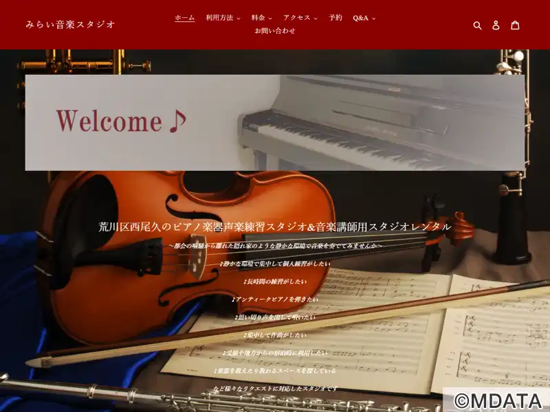 24時間営業、60分500円/1人、約5畳のスタジオにBELTONアップライトピアノ完備。荒川区西尾久の楽器練習スタジオ&音楽講師向けレンタルスタジオ。旧小台通りを徒歩7分。通りの赤い看板が見えたら、黄色いテントの「美容室KM」のドアを開けて中に入ると奥にスタジオがある。サービスはすべてセルフ式。会員制&事前予約制、料金は完全後払い。2019年2月みらい音楽社中スタジオから改名。