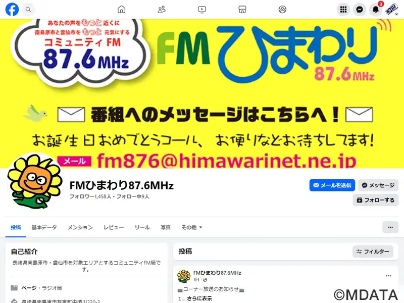 長崎県南島原市と雲仙市を拠点に、地域に根ざした情報を届けるコミュニティFM局。周波数87.6MHz。株式会社ひまわりてれびの運営で、2017年4月開局、2019年には雲仙市愛野町および国見町にも中継局を開設した。地域の生活・防災・イベント情報から音楽・映画・文化まで、多彩な番組が日替わりパーソナリティによって展開され、地域に密着したきめ細かな情報発信と、双方向性を大切にした市民参加型の放送を行う。