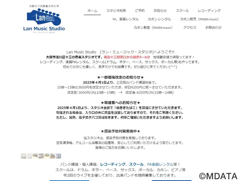 大阪市の阪急十三駅から徒歩5分にある音楽スタジオ。A(10畳)、B(13畳)のバンドリハーサルスタジ2部屋と、C(2.5畳)の個人練習専用スタジオを備え、バンド練習やレコーディングに利用できる。楽器やPAのレンタルサービスや、ドラム、ギター、ベース、サックス、ボーカルなど様々な楽器のスクールも運営しており、音楽活動をサポートする。年に2回のライブイベントを主催するなど、地域の音楽文化の活性にも貢献。