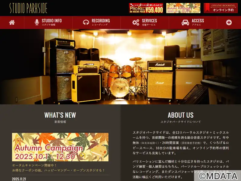 埼玉県戸田市にある大型音楽スタジオで、地元プロ・アマチュアバンドの活動拠点となっている。13のリハーサルスタジオとミックスルームがあり、バンド練習や個人練習、さらにはプロフェッショナルレコーディングやダンスパフォーマンスまで対応可能。豊富な機材と広いスペースで幅広い音楽活動に利用できる。24時間営業で、リラックスできるロビーと16台分の駐車場が完備。オンライン予約など便利なサービスも充実している。