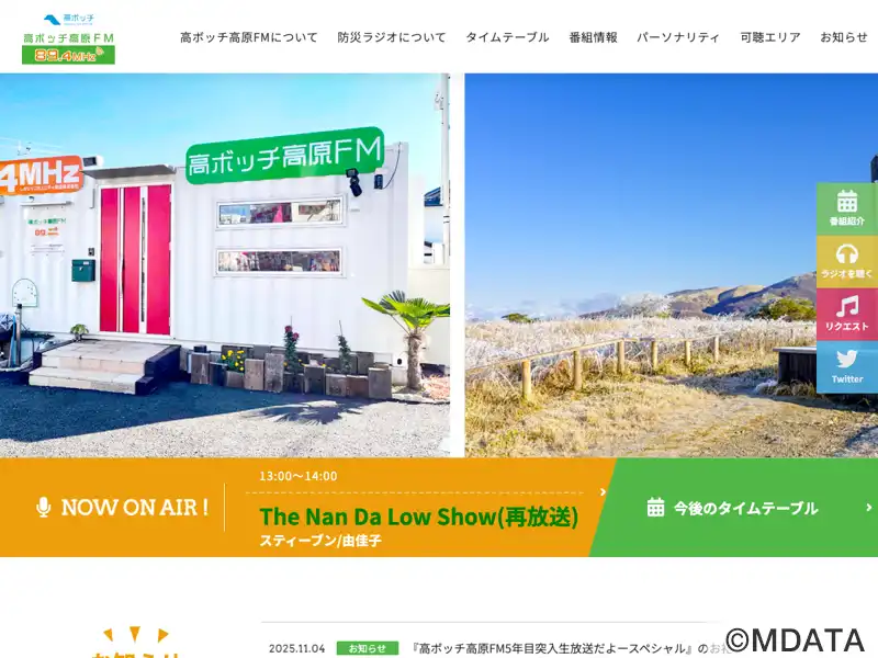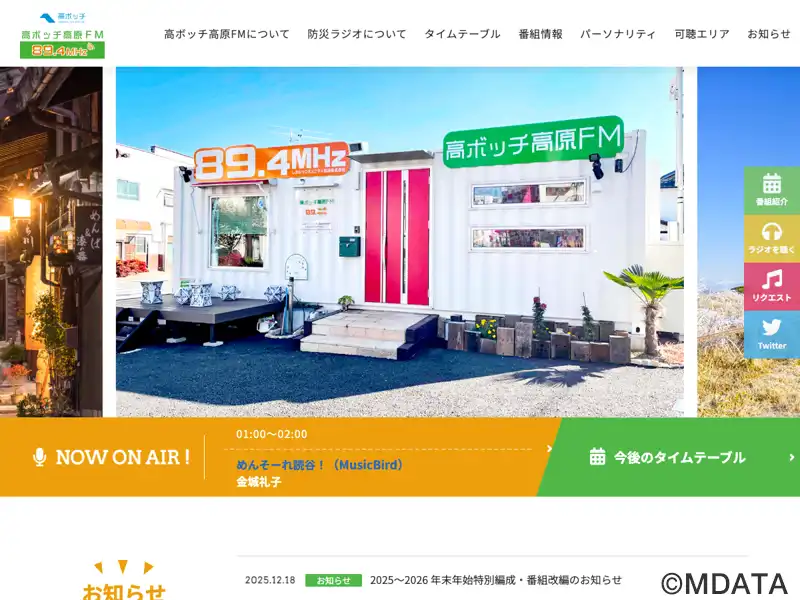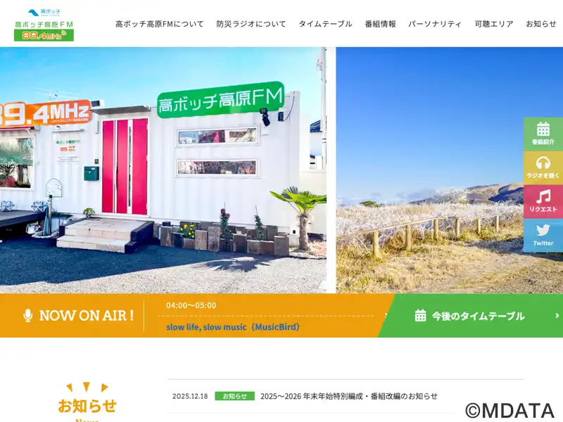 周波数89.4MHz。塩尻市東部に位置する高ボッチ山(標高1,665m)を愛称由来に、2021年11月1日開局した塩尻市・朝日村のコミュニティFM、しおじりコミュニティ放送株式会社(県内9局目)。大門三番町のコンテナハウス・スタジオから朝昼夕の生放送を中心に24時間放送(ミュージックバード再送信)。塩尻市と災害時協定締結。可聴エリア:塩尻市・朝日村の近隣6万世帯。出力20W。JOZZ4AU-FM