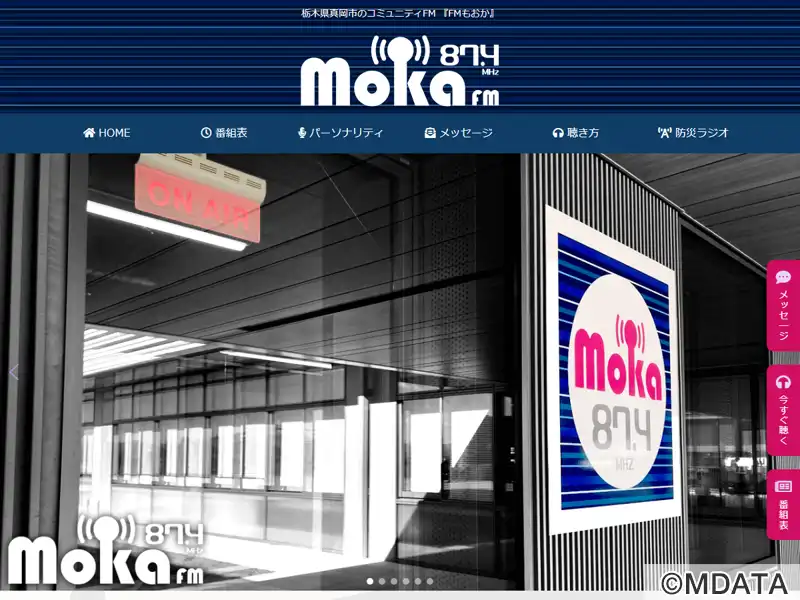 周波数87.4MHz。いちごの生産量日本一・真岡市の地域コミュニティFM。株式会社エフエム真岡、愛称:FMもおか。「いいイチゴ」の語呂合わせで2020年11月15日11時15分に開局。公設民営方式を採用し、宇都宮ケーブルテレビが運営。新市庁舎2階に設けたスタジオから24時間放送。防災ラジオ、FM++、U・CAT・Vいちごチャンネルのデータ放送(ch111)でも配信。出力20W。JOZZ3CV-FM