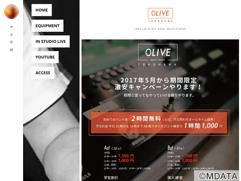 横浜・天王町にある音楽スタジオ・ライブスペース。Aスタジオ(20帖)とBスタジオ(21帖)の2つの広々とした部屋を備え、CANOPUSとDWのドラムセットを完備。バンドデビューや学生むけの割引サービスや、オールナイトパックの特別料金設定もあり。また、スタジオライブでの利用も可能で、約60人収容できる。コピーバンドから初心者バンドまで、誰でもノルマなしで、出演できるスタジオライブも定期開催している。