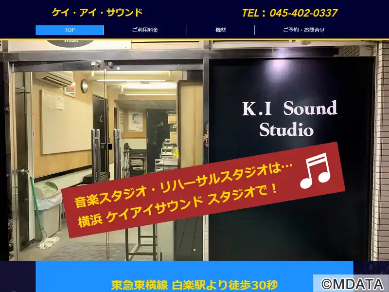 横浜市神奈川区の東横線白楽駅前にあるリハーサルスタジオ。14畳(A・B)と9畳(C・D)の4室のスタジオを備え、全室ミラー張りでドラムセット、キーボードアンプ、CD-Rレコーダー、MD&カセットデッキが設置されている。また、レコーディングに対応し、音源制作のサポートも行っている。初心者からバンドやミュージシャンまで、親しみやすい雰囲気で音楽の創造に専念できるスタジオ。駐車スペース一台あり(要予約)。