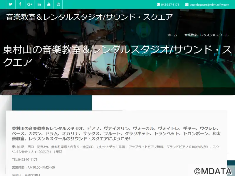 東京東村山市の東村山駅近くのリハーサルスタジオ。大音量でもクリアな音質のスタジオを提供。スタジオ内にはミラー、簡易録音機材が常備されている。特に、ドラムセットのメンテナンス・チューニングは、専門のドラムテクニシャンが毎日行っている。アップライトピアノも利用可能。また、無料の駐車場も完備している。一流の講師によるマンツーマンレッスンも開講。初心者から上級者まで、さまざまな楽器のレッスンを行なっている。