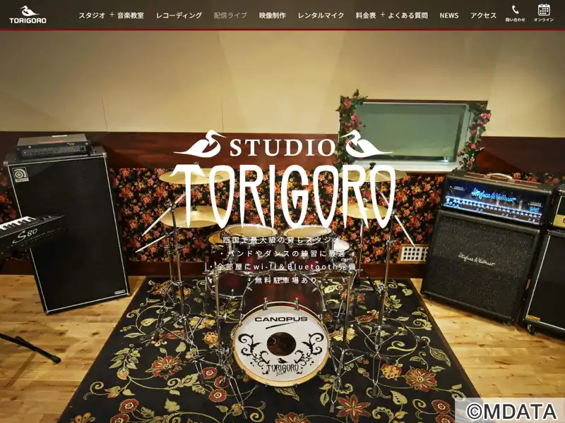 阿波徳島にある老舗スタジオで、リハーサルからレコーディング・ミックス・マスタリング、配信やPV撮影にも対応する。スタジオは、大編成バンド練習やダンス練習が可能なAスタジオ、タイトな音響で長時間練習にもおすすめのBスタジオ、セルフRECに適したCスタジオの全3部屋を用意。3ブースを使っての同時録音も可能。また、最大60人までのスタジオライブも開催可能で、ライブ初心者や学校・サークルのイベントにも最適。