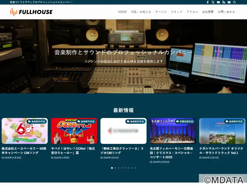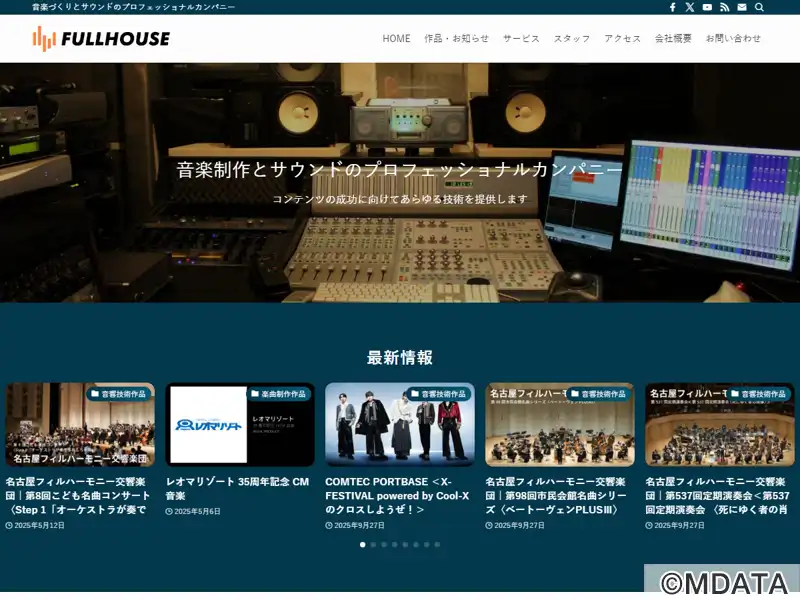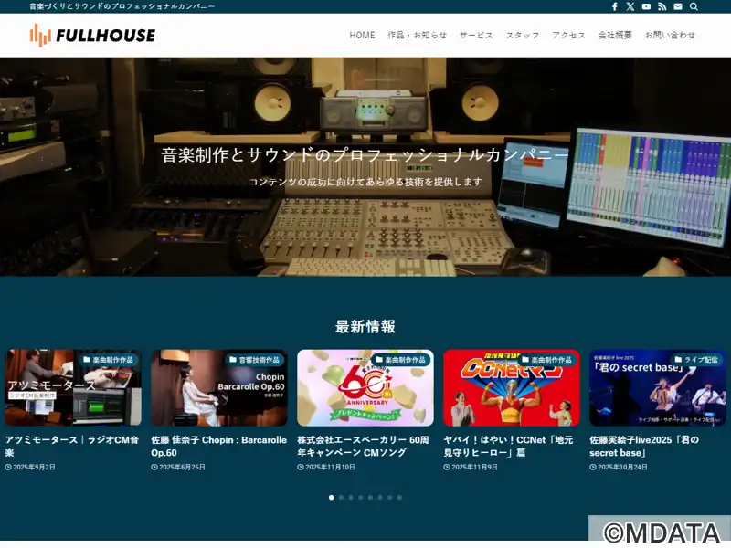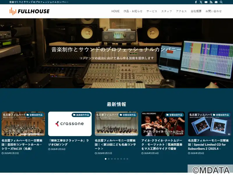 音楽制作とサウンドのプロフェッショナルカンパニー。アーティスト、映像作品、ゲーム、イベントなど音楽が必要なあらゆるコンテンツに対しての作品を制作する。また、プロ仕様の録音機器、グランドピアノ、3つの演奏ブースを持つ音楽スタジオを所有。ProTools Ultimateを軸に、マスタリングツールはSequoiaを導入。国内外で活躍するエンジニアによってコンパクトながら最高の作業効率での制作環境を提供する。
