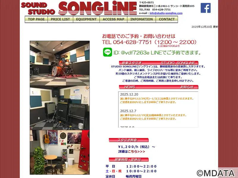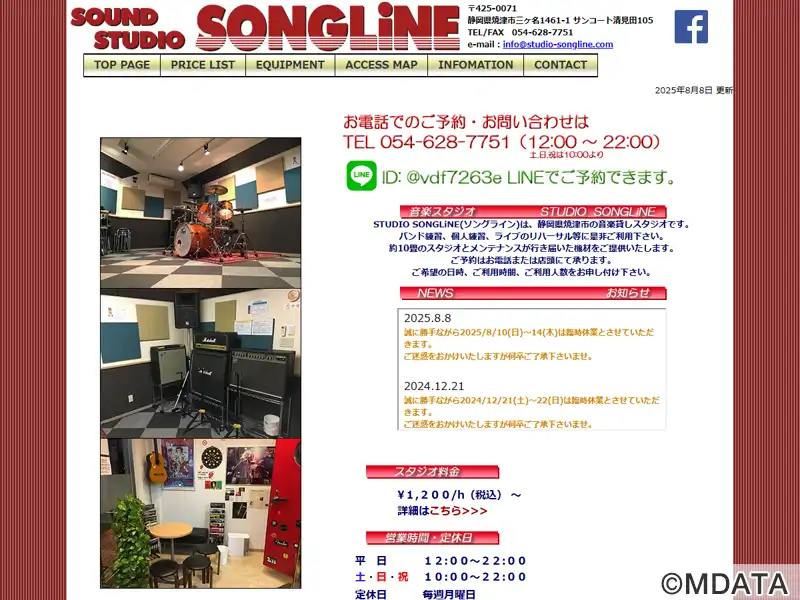静岡県焼津市にあるリハーサルスタジオ。バンド練習や個人練習に適した約10畳のスタジオは、デッドな音響設計で、メンテナンスが行き届いたPearlのドラムセット、Fender Concertアンプなどの機材を揃えている。照明は白熱灯と蛍光灯を切り替え可能。休憩スペースにはポトスの緑と小さなギターの絵が飾られ、アナログレコードプレーヤーも設置。禁煙でクリーンな環境を維持している。駐車場完備。