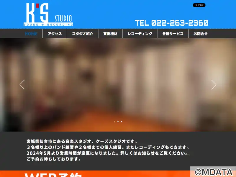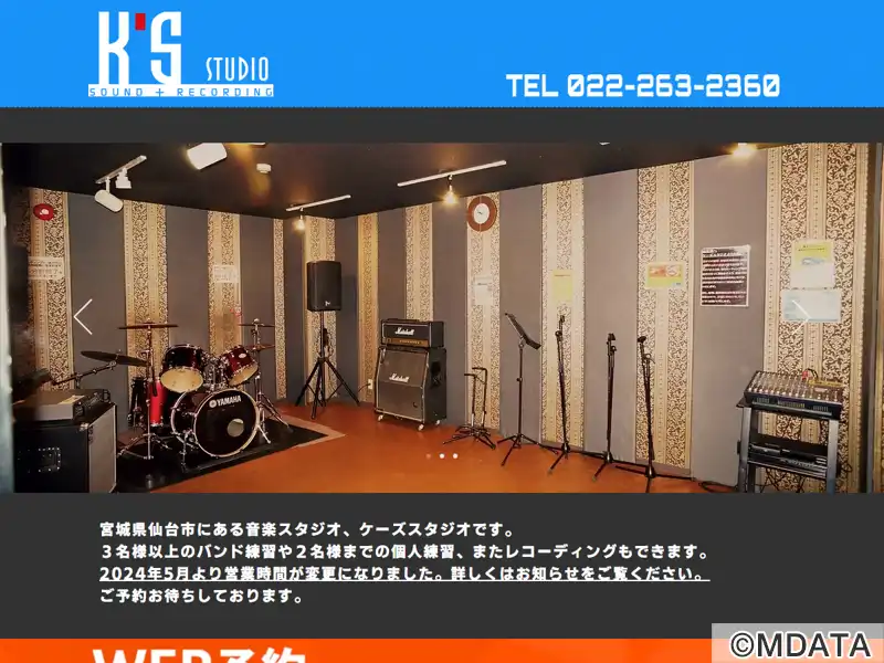 仙台市青葉区に位置する音楽スタジオ。アットホームな雰囲気が特徴で、バンド練習や個人練習、レコーディングなど楽活動をサポートする充実した設備を備える。スタジオは全6部屋、1st、2st、3stの各スタジオは壁面ミラーあり、「Garage」は27帖の広さでスタジオライブも可能。個人練習専用の「Pit」や「Cube」も用意されている。リーズナブルなレコーディングや、店外へのPA機材レンタルも行っている。