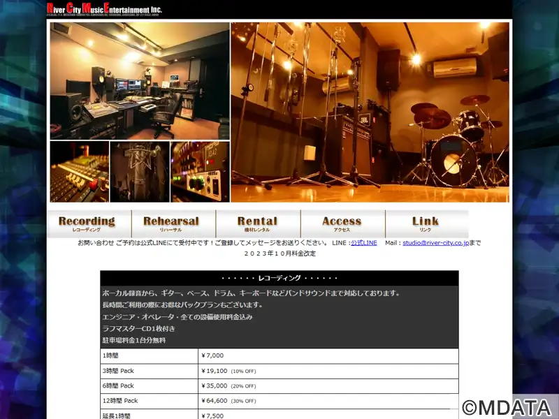 ラジオ・CM制・楽曲制作を行うリバーシティミュージックエンタテインメントが運営する音楽スタジオ。多くの有名アーティストにも利用されるプロ仕様レコーディングスタジオ。ボーカル録音から、バンドサウンドまで対応。エンジニア・オペレータ・全て込みのパックプランを提供。また、アコースティックギターやピアノ弾き方り、ナレーション録音など2トラックレコーディングとマスタリングがセットになったリーズナブルなプランもあり。