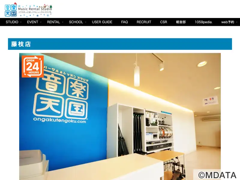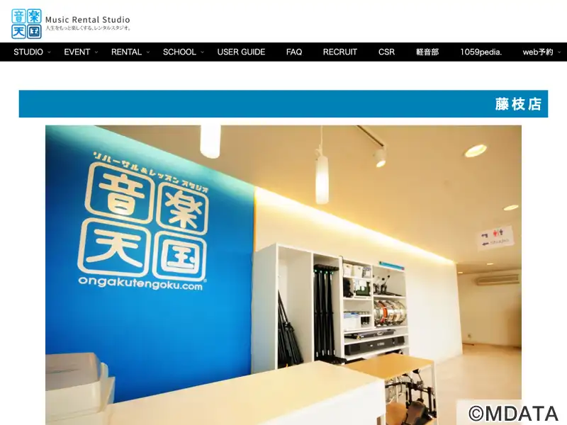 藤枝市高柳にある、音楽やダンスの貸しレンタルスタジオの「音楽天国」の藤枝店。1studio(6畳)、2studio(8畳)、3studio(9畳)、4studio(10畳)、5studio(11畳)、6studio(13畳)の6部屋を備え、SAKAEドラム、Ampeg、Marshallのアンプなどを常設する。6studioではスタジオライブの開催も可能。音楽で人々の幸せを創造することをミッションに掲げる、株式会社イースタイル運営。