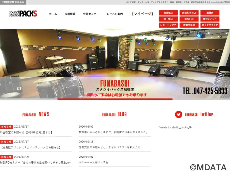 千葉県船橋市の船橋駅から徒歩5分の場所に2010年オープンした音楽スタジオ。音楽スタジオ10部屋とダンススタジオ2部屋を備えた大型店。2フロアに、12帖から最大60帖の部屋があり、ライブやリハーサル、ダンス、レコーディングなど多様な用途に対応。38畳の大部屋では本番さながらのリハーサルも可能で、全室にLAN導入、各種マイク等のレコーディング機器も充実。セルフ録音機器やDJ機材も常備、大型機材庫もあり。