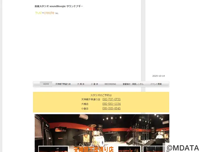 北九州市小倉駅から最も近い音楽スタジオ、通称ブギーの小倉店。Aスタジオは18畳で壁一面鏡張り、ライブリハーサルやスタジオライブの開催も可能。10畳のBスタジオ、8畳のC、Dスタジオは個人練習などの他、スタジオ間にマルチケーブルが通してあり、録音ブースとコントロールルームとしてセルフレコーディング利用が可能となっている。専属エンジニアによるプロレベルのレコーディングや、出張レコーディングも行っている。