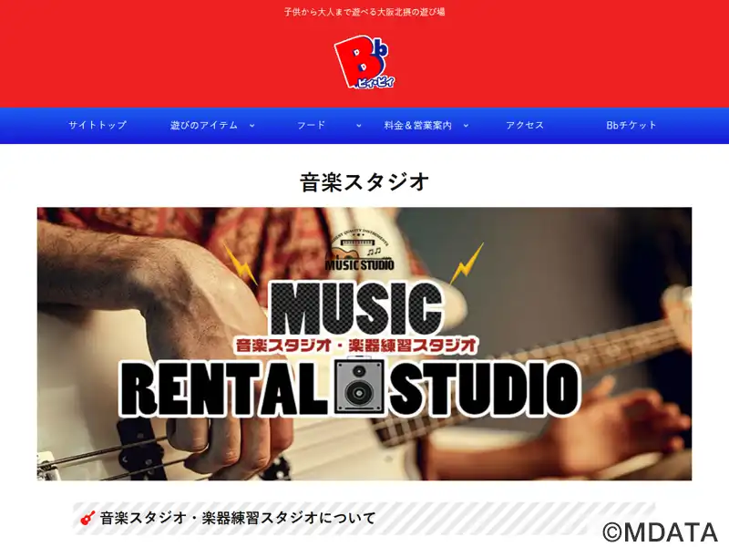 大阪箕面市に位置するアミューズメント施設「Bb箕面船場店」内に設けられた音楽スタジオ。4つの部屋があり、各部屋にはミキサー、アンプ、ドラムセットを完備し、一部の部屋ではキーボードも利用可能。マイクやマイクシールド、ドラムスティックの貸出しも行っていて、楽器初心者でも安心して利用できる環境を揃えている。また、キッズアスレチック、カラオケ、ボウリングなど、幅広い年齢層に対応した楽しい設備を併設している。