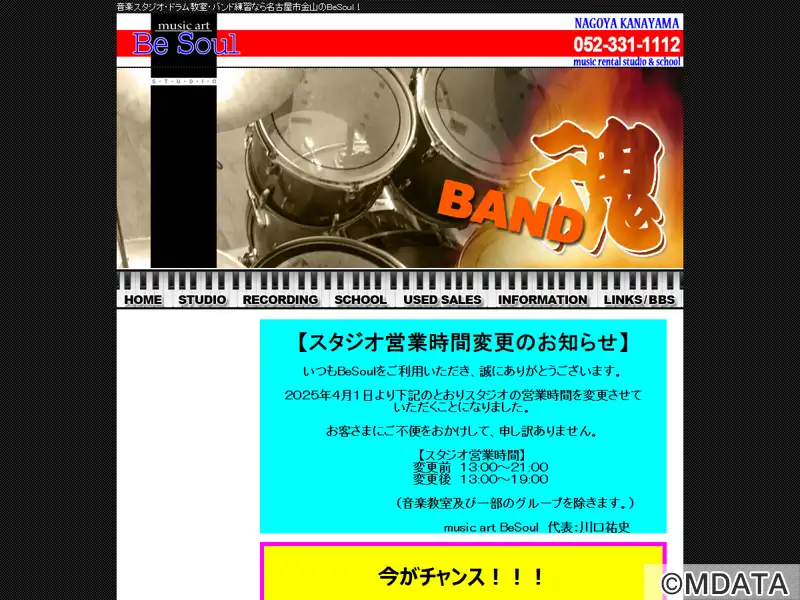 名古屋金山にある、レンタルスタジオや音楽スクール、レコーディング、新品・中古楽器、音響機器の販売などのサービスが揃う音楽ショップ。音と機材と快適さにこだわった全3部屋のスタジオがあり、バンド練習はもちろん、エンジニア付きのデジタルレコーディングもできる。1階に位置しているため、機材の搬入も楽々。スクールでは、ベテラン講師のよるエレキギター、アコースティックギター、ベース、ドラム教室が開講されている。