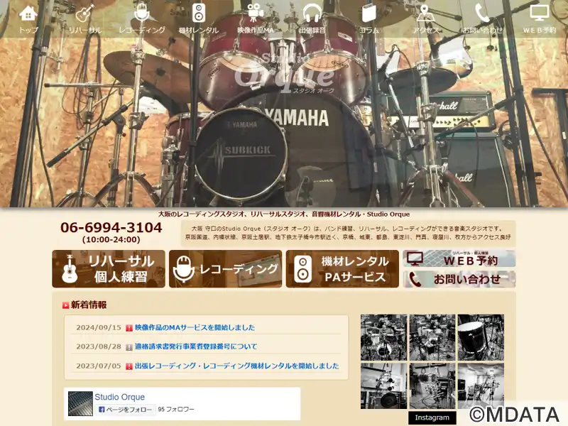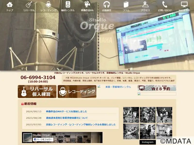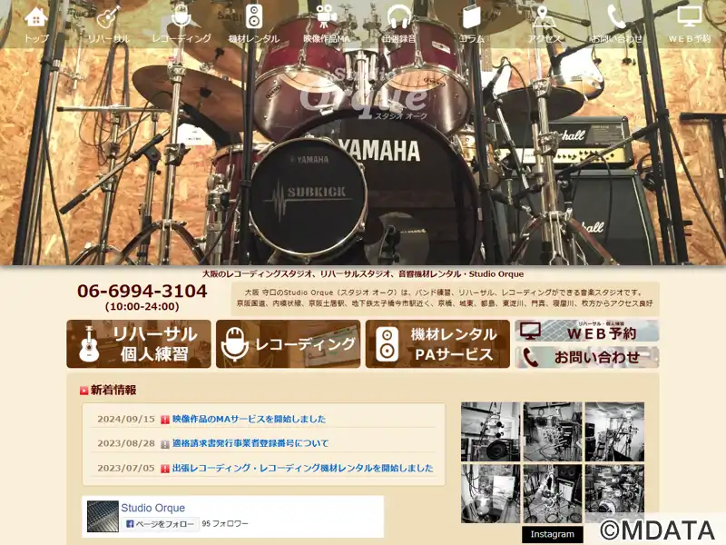 大阪守口に位置する音楽スタジオ。バンドリハーサル、個人練習、ProToolsによるレコーディングなど、多様な音楽制作のニーズに対応。独自の視点でデザインされた、自由で快適な音楽制作環境を提供している。スタジオ内には吸音壁と反射壁、アンプ、ドラムなどの定番機材、無料で使用できる楽器、備品も豊富に揃っている。また、音響機材レンタル、PAサービスやオペレータ派遣なども提供し、音楽イベントのサポートも行う。