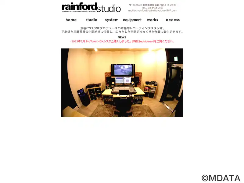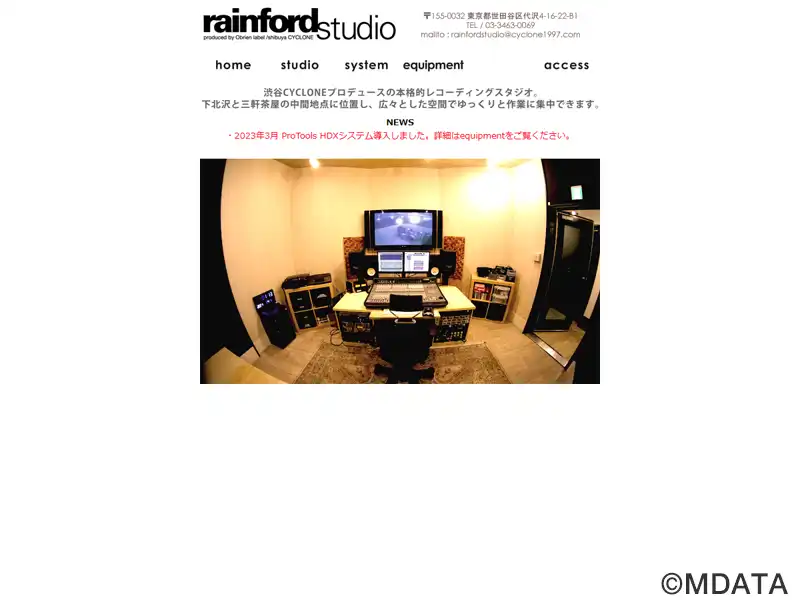 淡島通り(三軒茶屋)にある渋谷サイクロンプロデュースのレコーディングスタジオ。天井が高く開放的なメインスタジオ(15帖)は居心地も抜群。1日1アーティストのロックアウトが基本なので気がねなくゆっくり利用でき、プライベート・リハーサルにも使用可能。12Jのコントロールルームとボーカルブース、サウンドロックを使用した一発録りもOK。ジャンル問わず、ご予算・長期プログラム等なんでもご相談下さい。