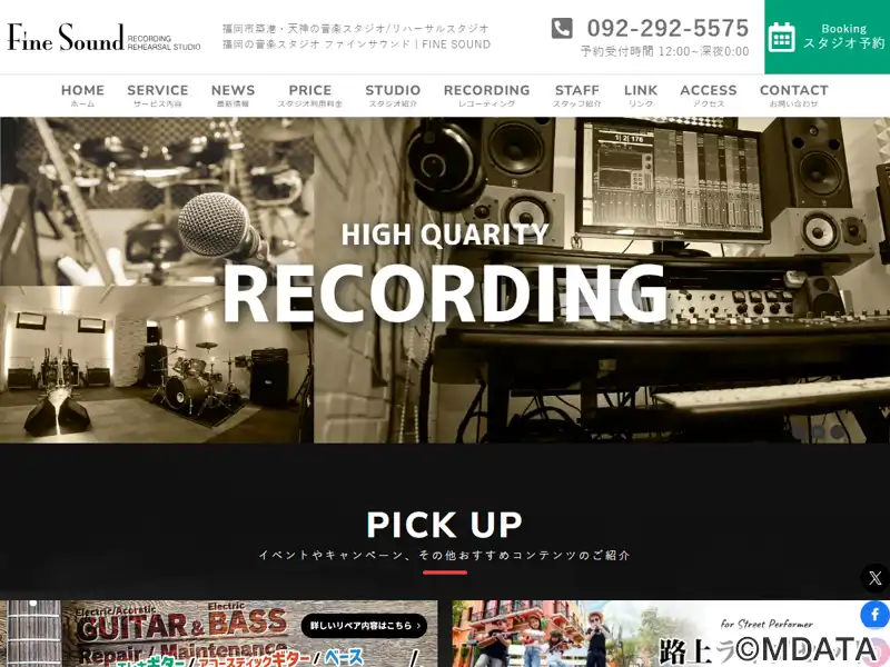 国際センター近くの築港店と天神店の2店舗営業中。築港店は14畳(一面鏡張り)と10畳の2部屋あり、リハーサル、レコーディング、音作りなどに最適。ProToolsと豊富なプラグインを使ったハイクオリティなレコーディングを格安で提供。ゆったりとした道路に面した一階なので機材の積み下ろしもラクラク。長時間パックあり。個人練習は2人まで。わからないこと、お気軽にご相談ください。