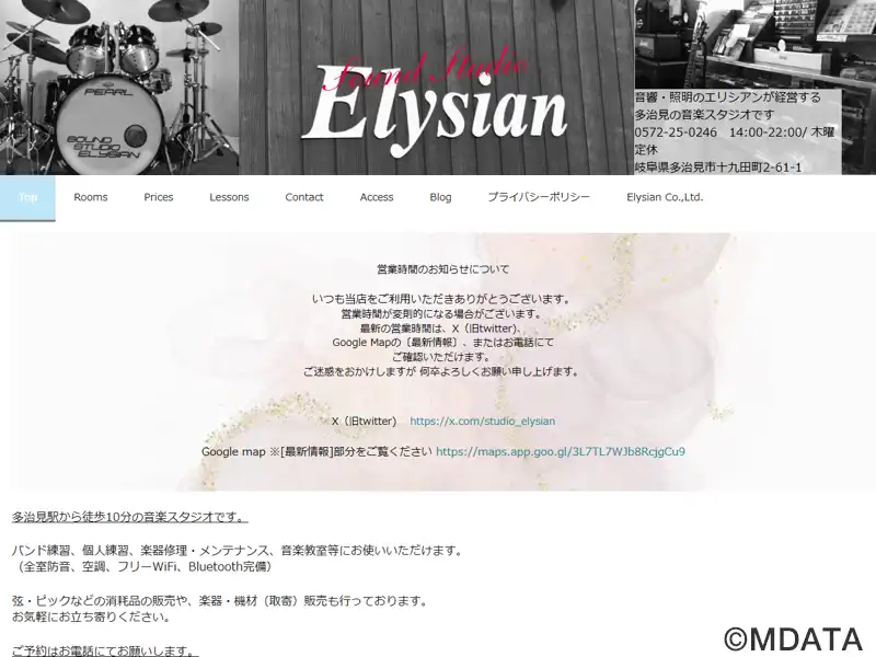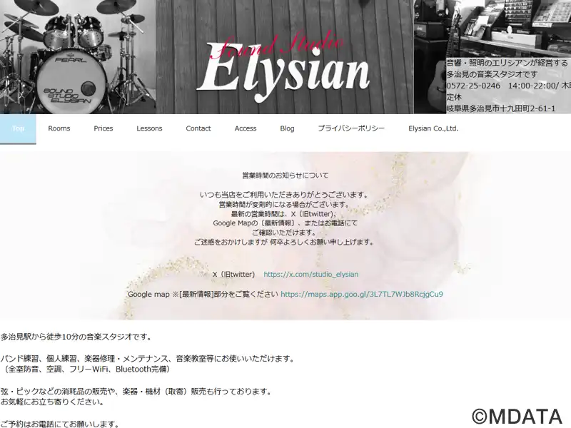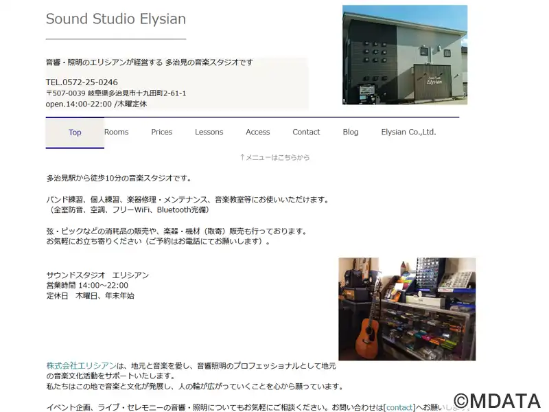 岐阜県多治見市を拠点とする音響・照明のプロフェッショナル「エリシアン」が運営する音楽スタジオ・教室。スタジオは、搬入・搬出が容易な15畳のAスタジオ、サブウーファー付き音響設備のあるBスタジオ、12畳のコンパクトなCスタジオの3部屋を用意している。また、ビギナーから上級者まで、ドラム、ボーカル、エレキ・アコースティックギター、ベースの幅広いジャンルのレッスンを開講。地元の音楽文化活動を支援している。